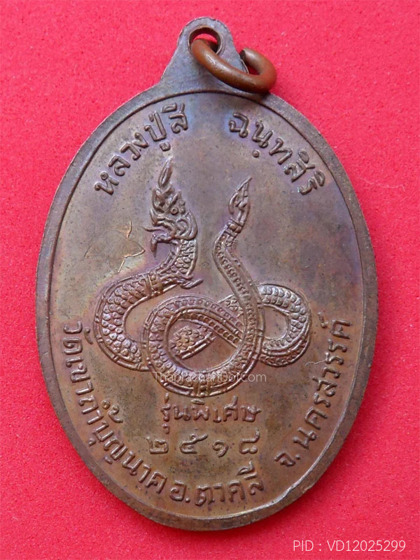 เหรียญหลังพญานาค หลวงปู่สี วัดเขาถ้ำบุญนาค ปี 18 เนื้อทองแดง