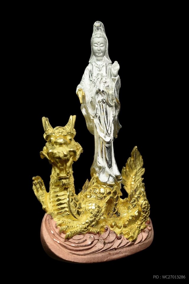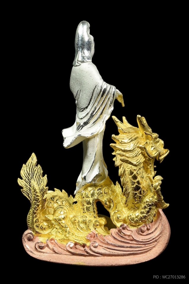 รูปหล่อเจ้าแม่กวนอิมทรงประทับมังกร เนื้อสามกษัตริย์