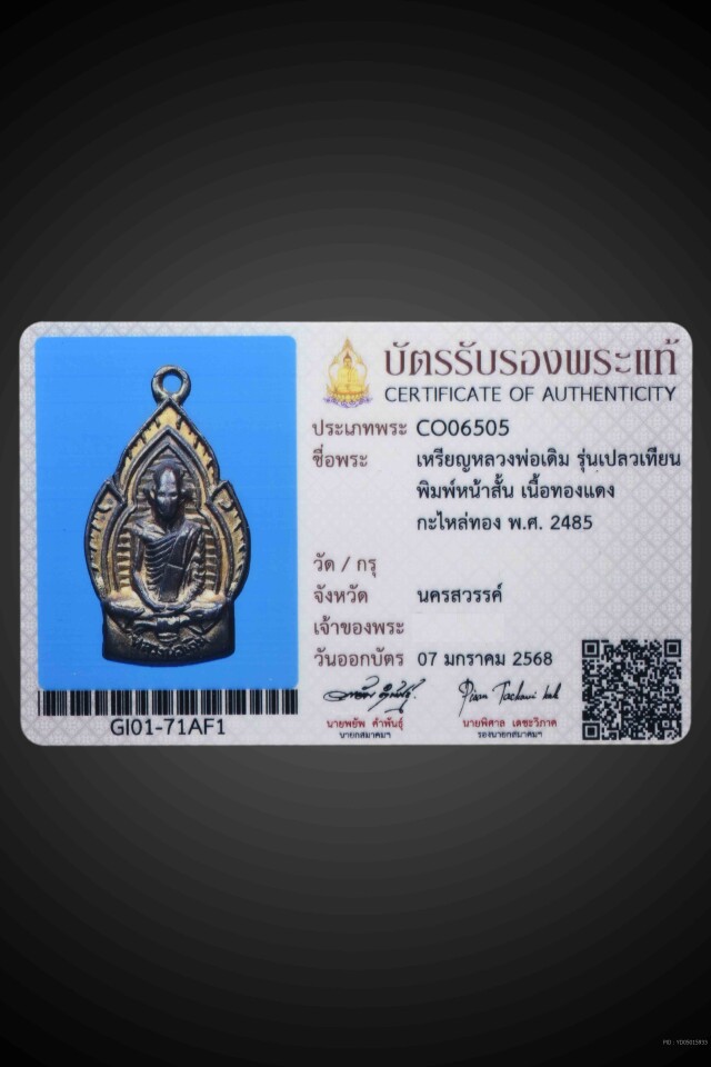 เหรียญหวงพ่อเดิม วัดหนองโพ ปี 2482