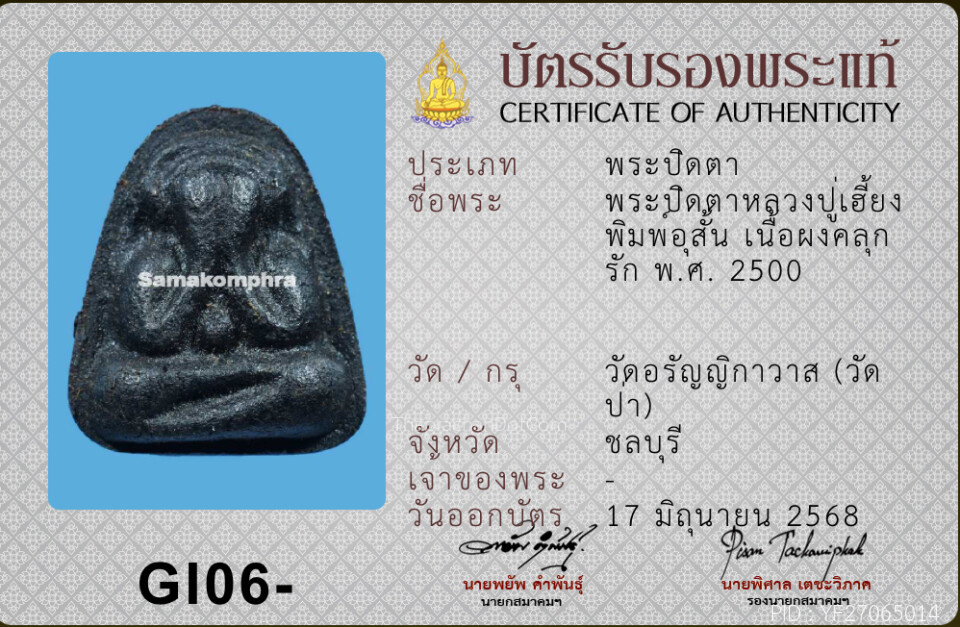 พระประทานพรหลวงปู่เฮี้ยงพิมพ์หลังยันต์ปุ ปี 2505