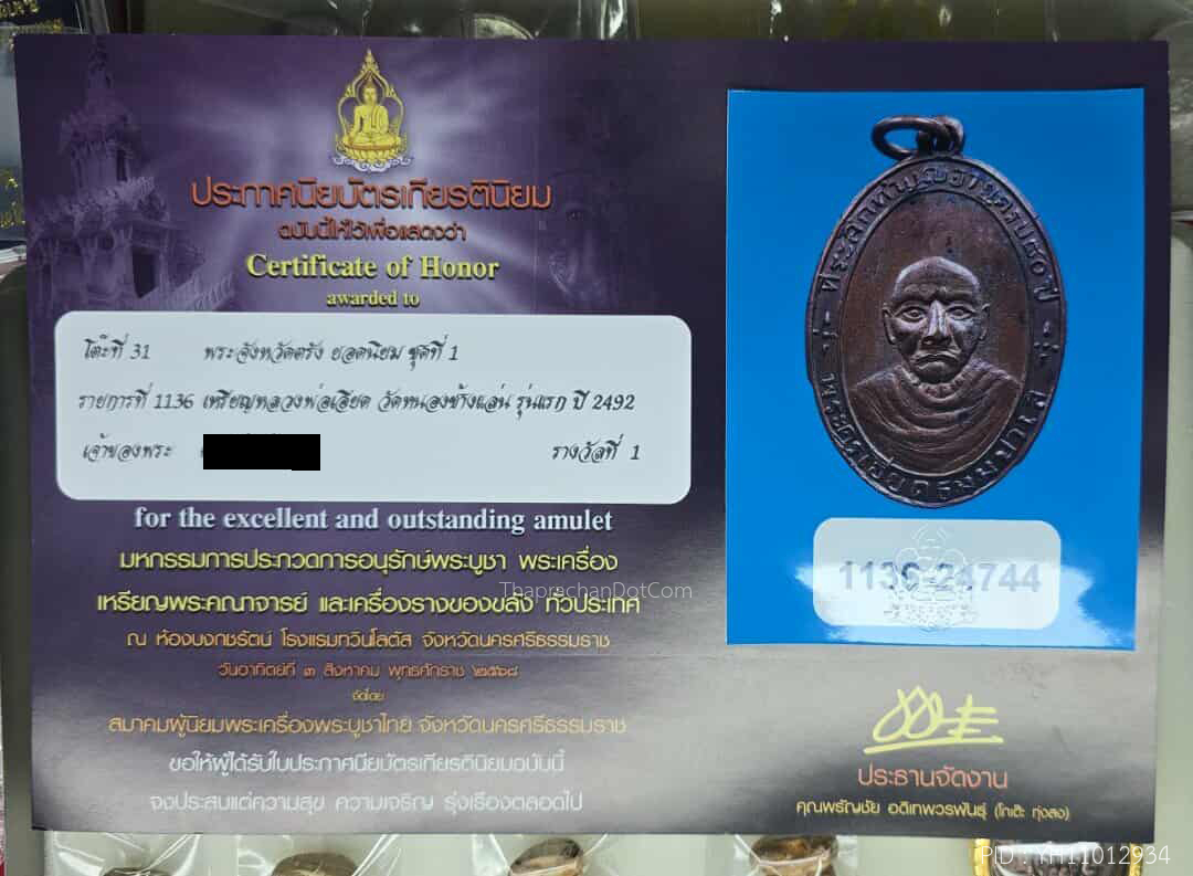 เหรียญพ่อท่านเอียด วัดหนองช้างแล่น แชมป์นครศรีฯ 3/8/68