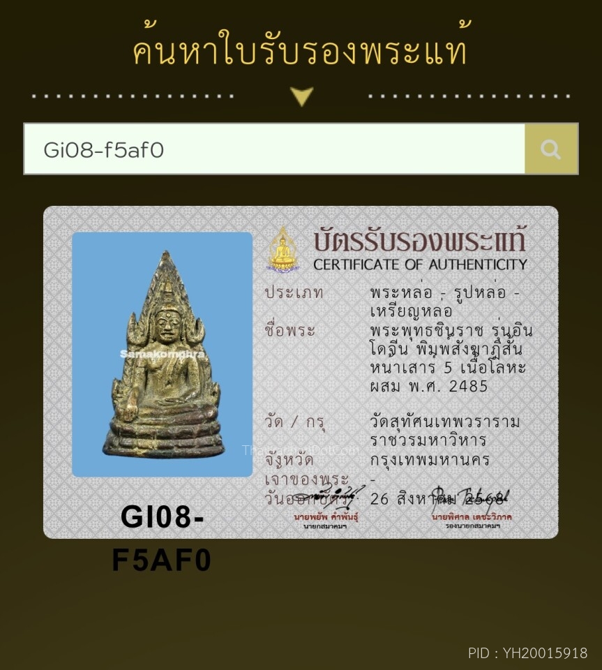 พระพุทธชินราชอินโดจีน 2485 พิมพ์ต้อ มีโค๊ต