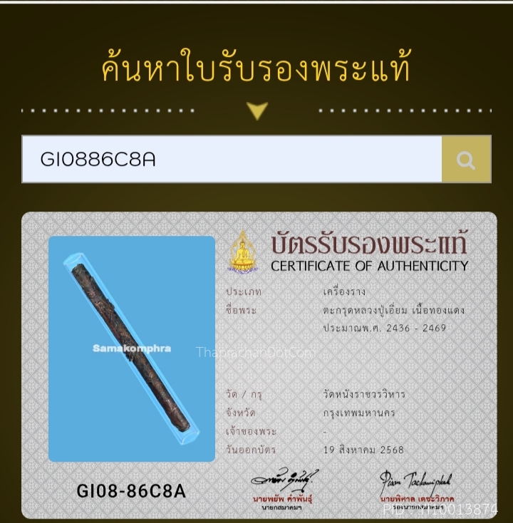 พระคงลำพูนกรุเก่าพร้อมใบเซอร์