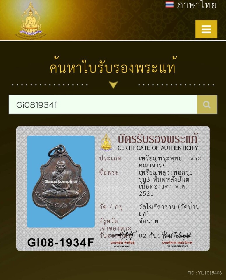 หลวงพ่อกวย รุ่น3 พิมพ์หลังยันต์ เนื้อทองแดง