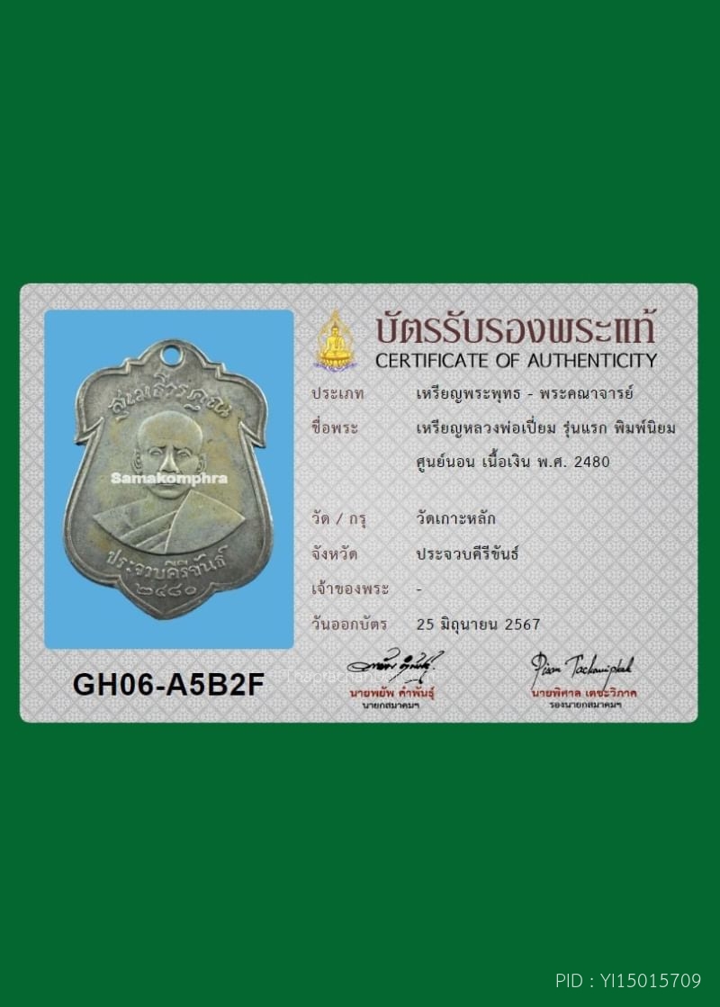 เหรียญรุ่นแรก ลพ.เปี่ยม วัดเกาะหลัก 2480 เนื้อเงิน บล๊อคนิยม