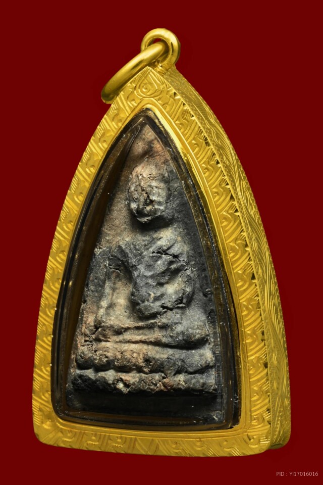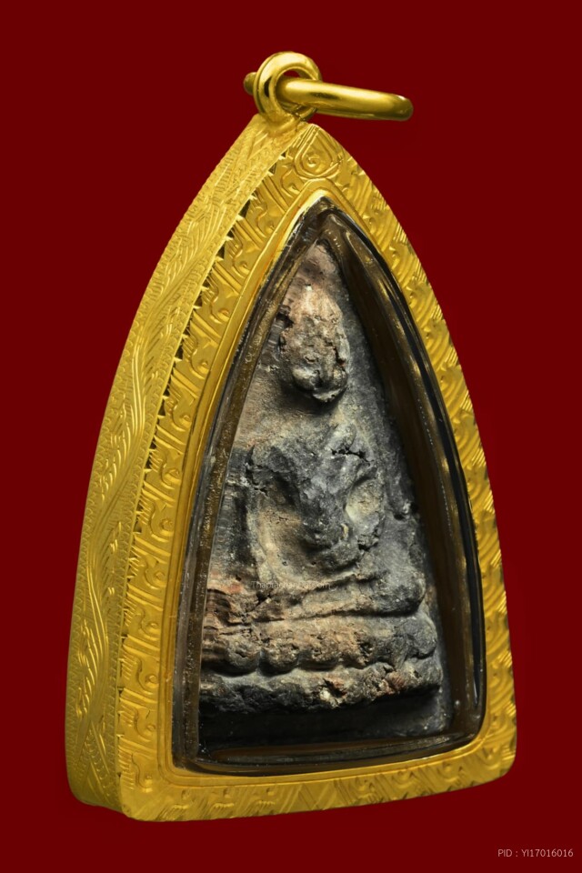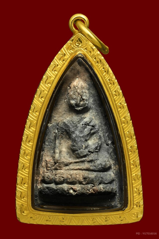 พระพุทโธน้อย เนื้อผง พิมพ์กลาง แขนหักศอก เลี่ยมทอง