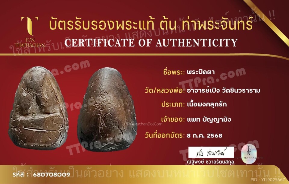 พระปิดตาอาจารย์เปิง วัดชินวราราม เนื้อผงคลุกรัก