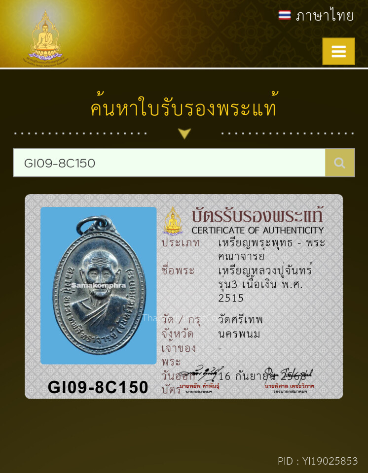หลวงพ่อแดง วัดเขาบันไดอิฐ รุ่นพฤทธิ์กำจร เนื้อเงิน