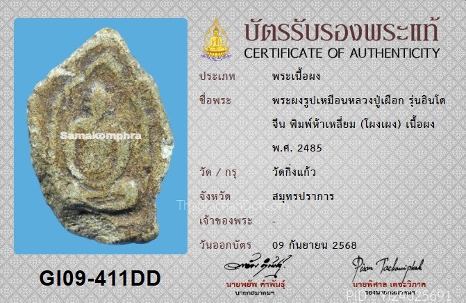 หลวงปู่เผือก วัดกิ่งแก้ว รุ่นอินโดจีน(โผงเผง)+บัตรสมาคม
