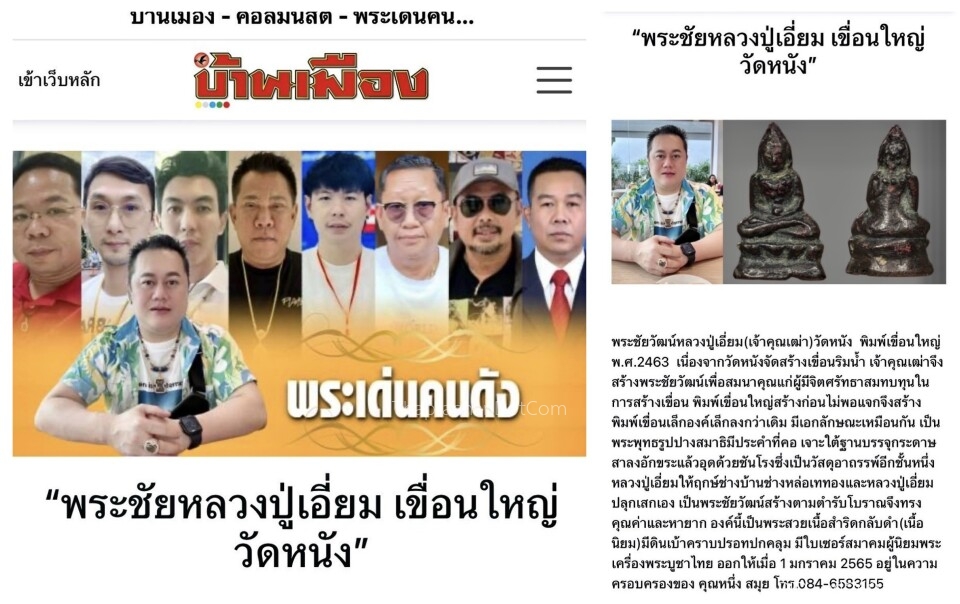 พระชัยวัฒน์เขื่อนใหญ่ หลวงปู่เอี่ยม วัดหนัง เนื้อสำริดกลับดำ