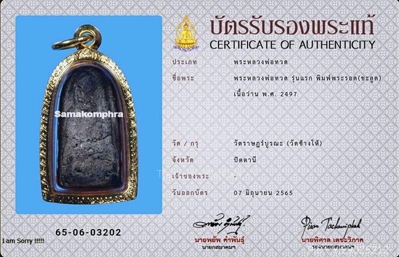 หลวงพ่อทวด วัดช้างให้ รุ่นแรก 2497 พิมพ์พระรอด พร้อมใบรับรอง