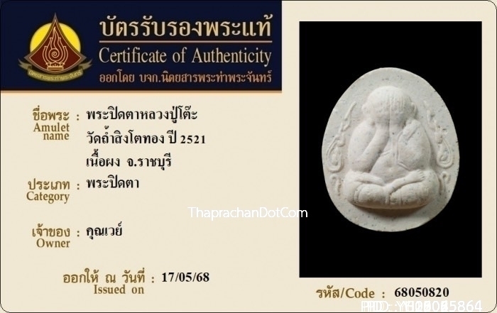 พระปิดตาหลวงปู่ยิ้ม วัดหนองบัว จ.กาญจนบุรี
