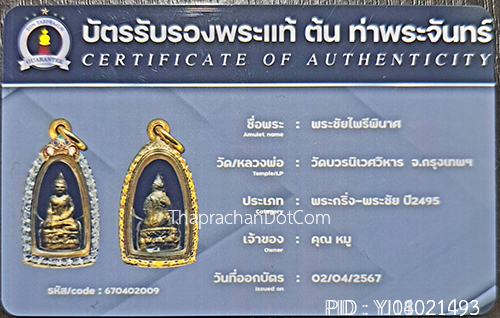 หลวงพ่อกวยรุ่นแรก วัดโฆสิตารามพระสวยสมบูรณ์ฟอร์มดี+บัตรสมาคม