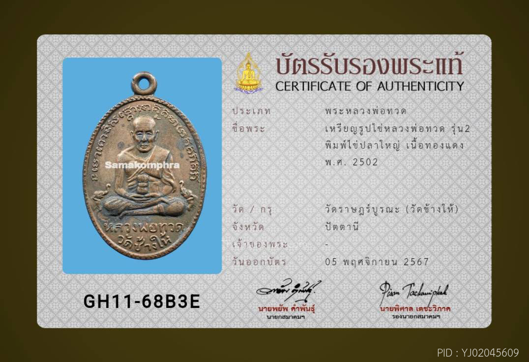 เหรียญหลวงปู่ทวดวัดช้างให้รุ่น2ปี2502บล็อกไข่ปลาใหญ่
