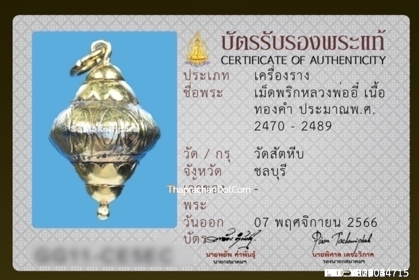 เม็ดพริกหลวงพ่ออี๋ วัดสัตหีบ เนื้อทองคำ