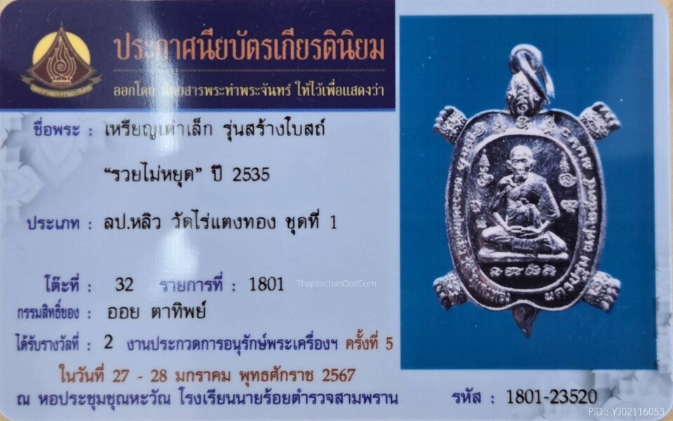 หลวงปู่หลิว เหรียญรวยไม่หยุด เนื้อเงิน ติดรางวัลหลายสนาม!