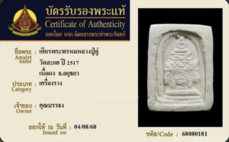 ล็อคเก็ตพระพุทธเจ้า หลวงพ่อผินะ วัดสนมลาว จ.สระบุรี