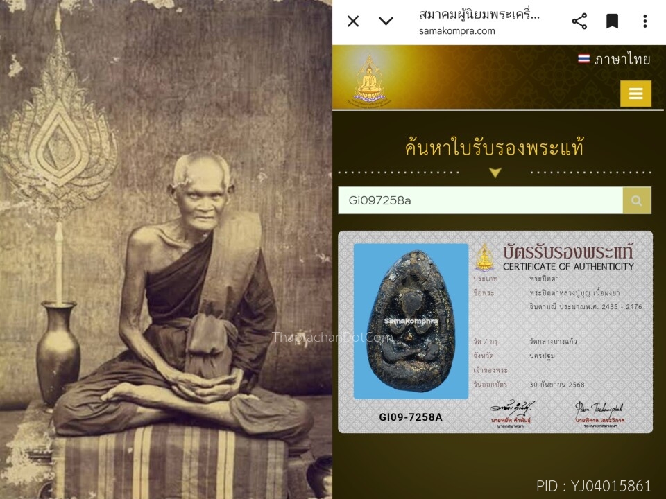 พระผงยาจินดามณี ลป.บุญวัดกลางบางแก้วพิมพ์นั่งบัวออก ปี2476