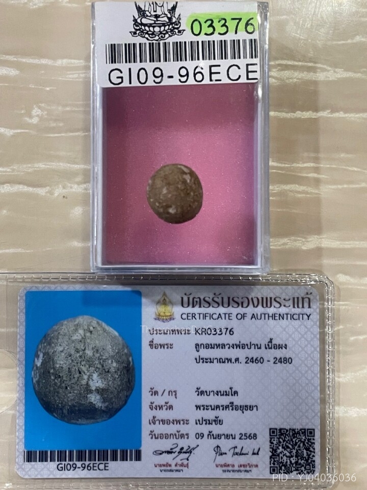+บัตรสมาคม ลูกอมยันต์เกราะเพชร หลวงพ่อปาน วัดบางนมโค