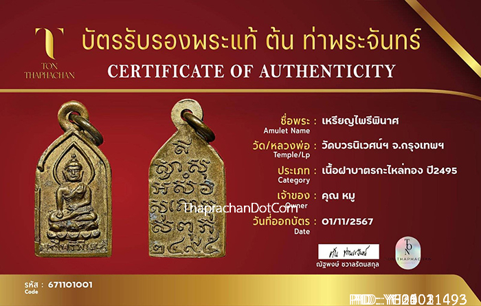 หลวงปู่ทิม วัดละหารไร่เจริญพรบนโค๊ดตัว ท.กรรมการแชมป์งานใหญ่