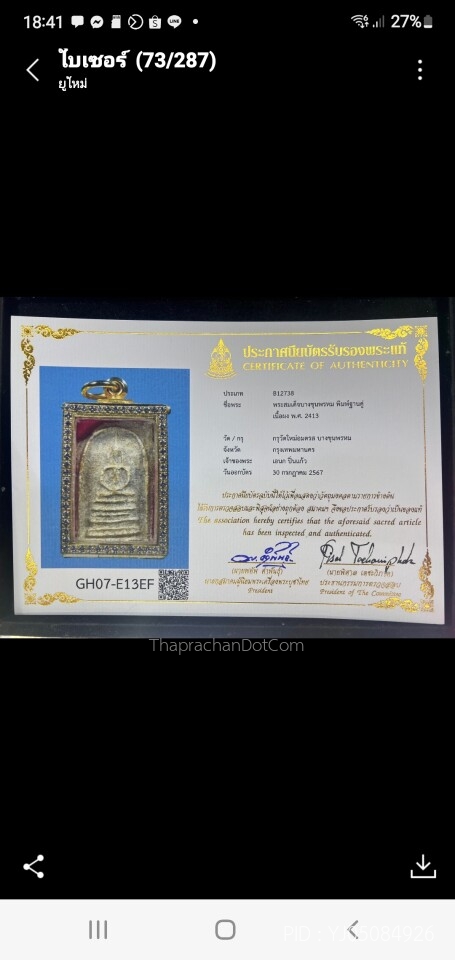 พระสมเด็จบางขุนพรหมพิมพ์อกครุฑว่าวจุฬา