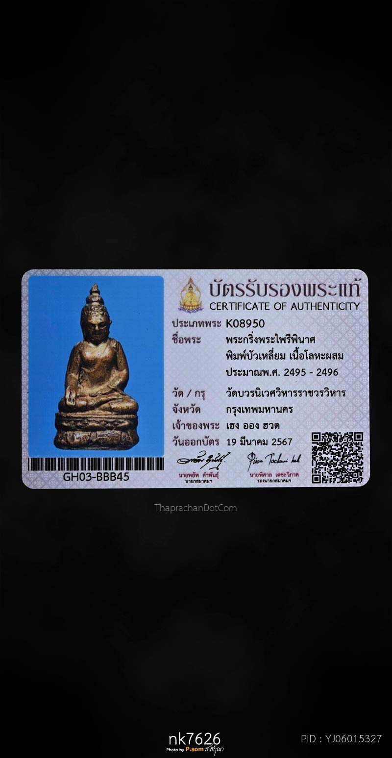 พระชัยวัฒน์ไพรีพินาศ วัดบวรนิเวศวิหาร พ.ศ.2495 สวยแชมป์