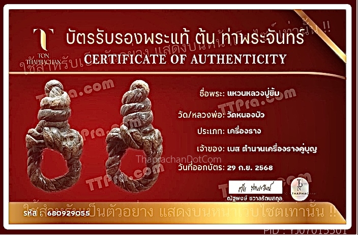 แหวนพิรอด หลวงพ่อม่วง วัดบ้านทวน จ.กาญจนบุรี