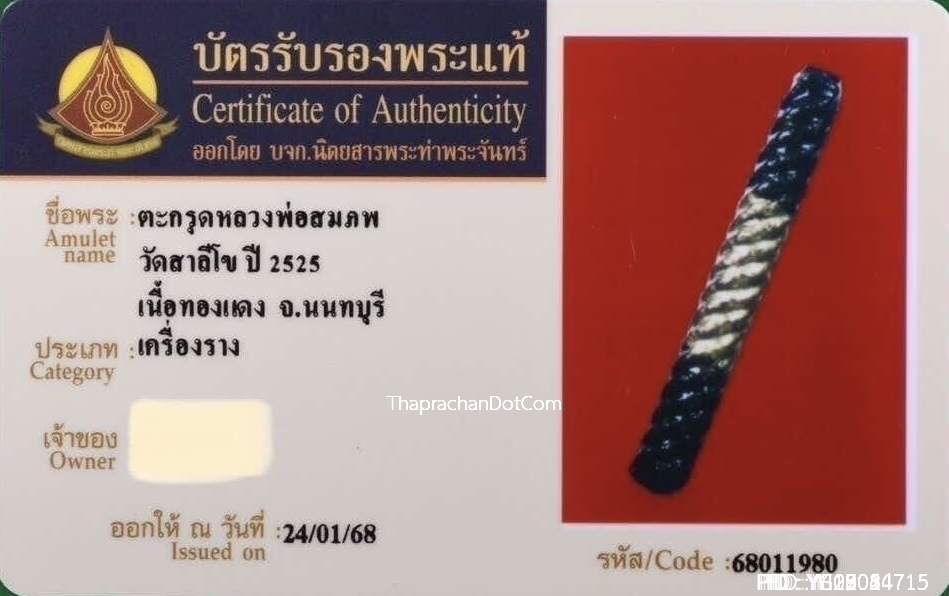 ตะกรุดหลวงพ่อสุด วัดกาหลง จ.สมุทรสาคร ปี2521
