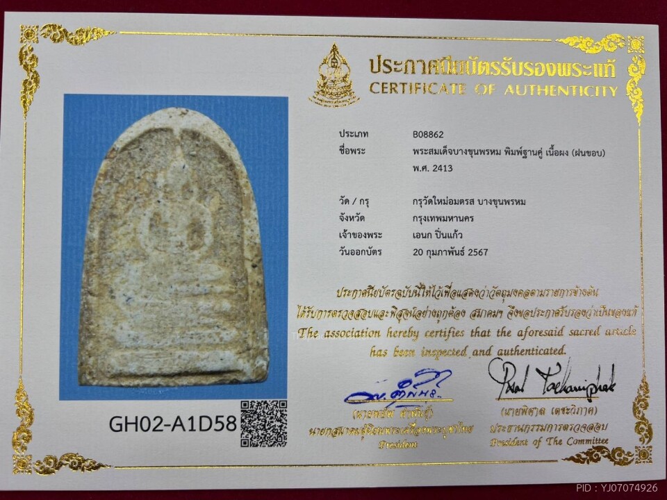 พระสมเด็จบางขุนพรหมพิมพ์เกศบัวตูม
