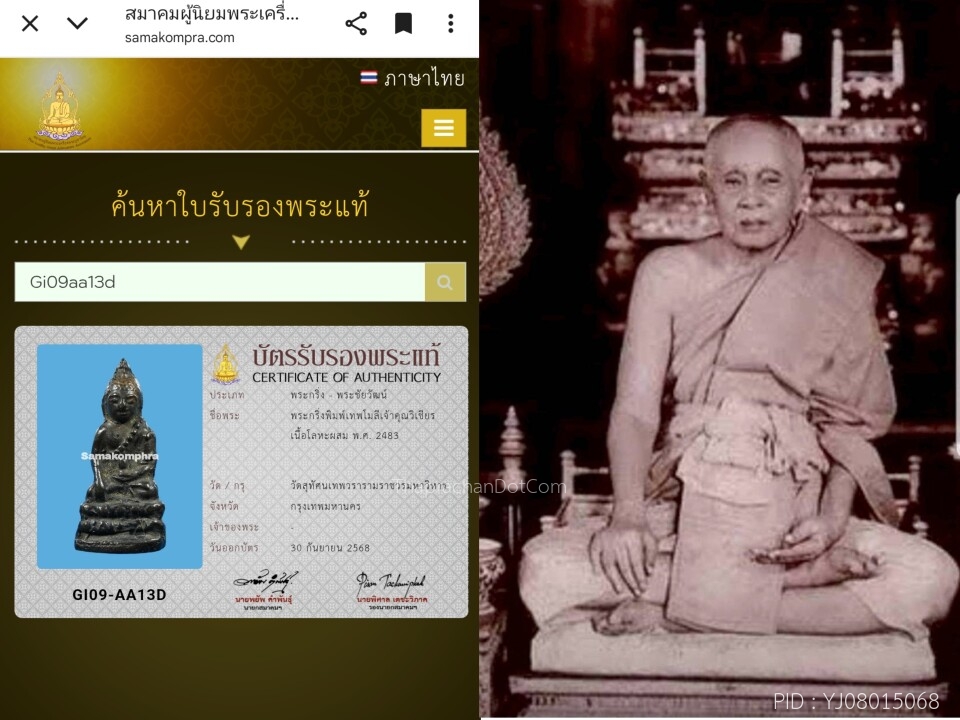 พระชัยวัฒน์น้ำเต้าเอียงสมเด็จพระสังฆราชแพวัดสุทัศน์ปี 82