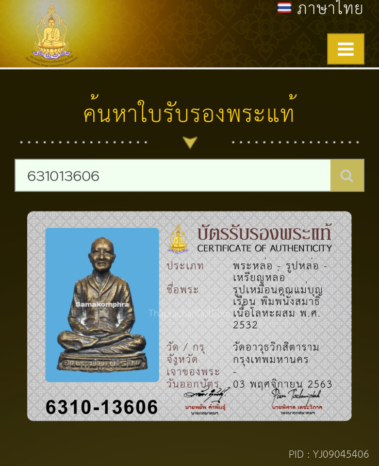 รูปเหมือนคุณแม่บุญเรือน พิมพ์นั่งสมาธิ เนื้อโลหะผสม พ