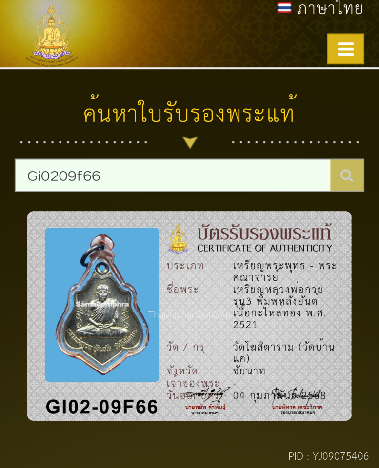 เหรียญหลวงพ่อกวย รุ่น3 พิมพ์หลังยันต์ เนื้อกะไหล่ทอง