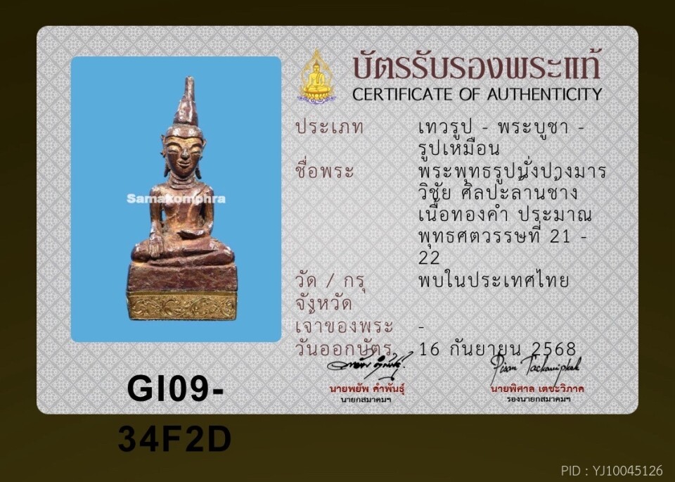 มีบัตร พระสมเด็จบางขุนพรหมม ปี09 พิมพ์จันทร์ลอย