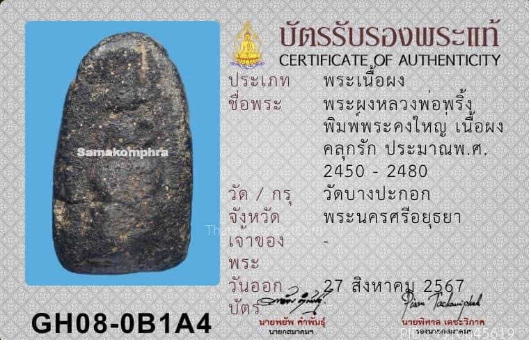 พระคงใหญ่หลวงพ่อพริ้ง วัดบางปะกอก(เนื้อผงคลุกรัก)