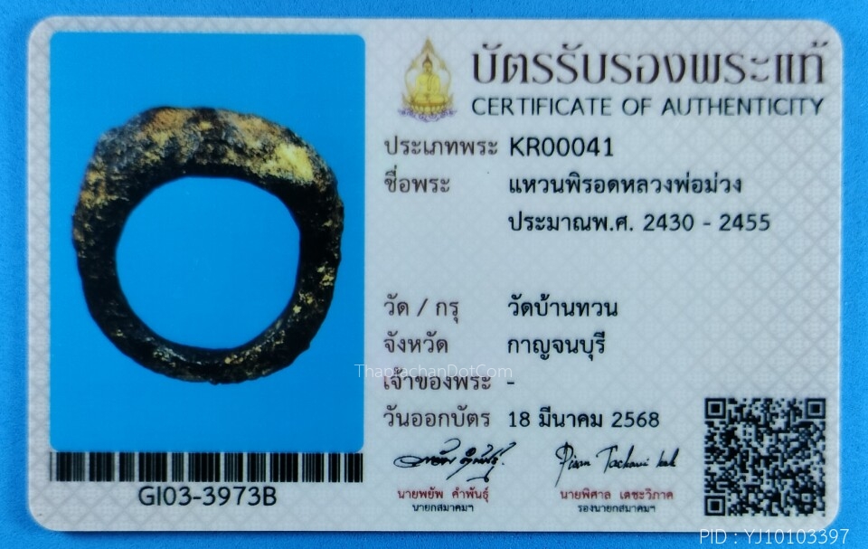 แหวนพิรอดหลวงพ่อม่วง วัดบ้านทวน#2 มีใบรับรองจากสมาคมฯ
