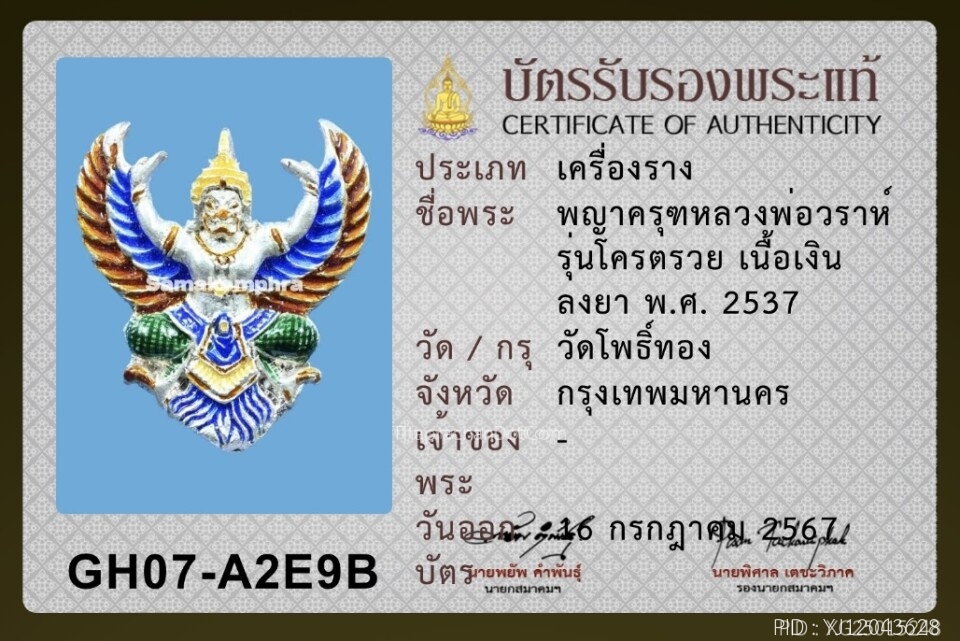 พระหลวงพ่อพริ้ง วัดบางปะกอก พิมพ์ทรงครุฑ เนื้อผงคลุกรัก