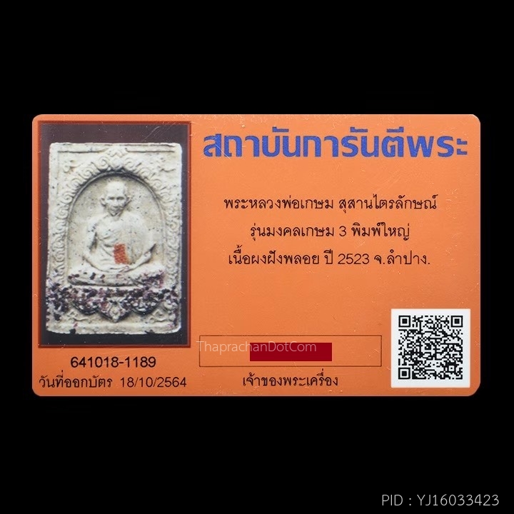 พระมงคลเกษม3 ฝั่งพลอย สุสานไตรลักษณ์ จ.ลำปาง ปี 2523