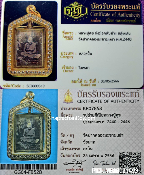 หลวงปู่ศุข วัดปากคลองพิมพ์ตัดชิดแท้มีใบเซอรและรางวัล2งานใหญ่