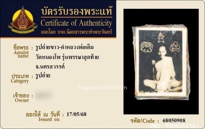 รูปเหมือนปั๊มหลวงพ่อเดิม วัดหนองโพ เนื้อตะกั่ว ปี2482