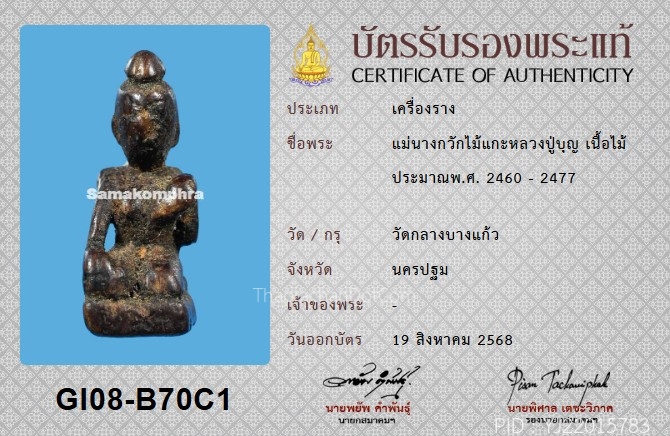 นางกวักหลวงปู่บุญ วัดกลางบางแก้ว จ.นครปฐม พร้อมบัตรสมาคม