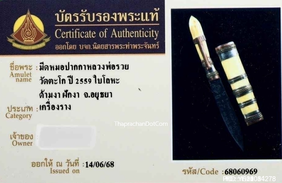 มีดหมอปากกาหลวงพ่อรวย วัดตะโก จ.อยุธยา