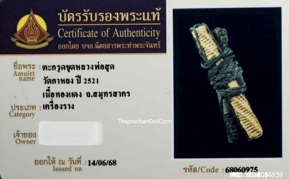 ตะกรุดชุดหลวงพ่อสุด วัดกาหลง จ.สมุทรสาคร ปี2521