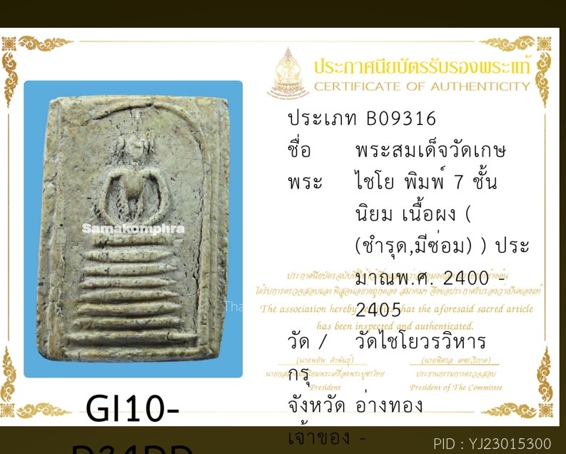 พระสมเด็จวัดเกศไชโย อ่างทองพิมพ์ 7 ชั้นนิยม