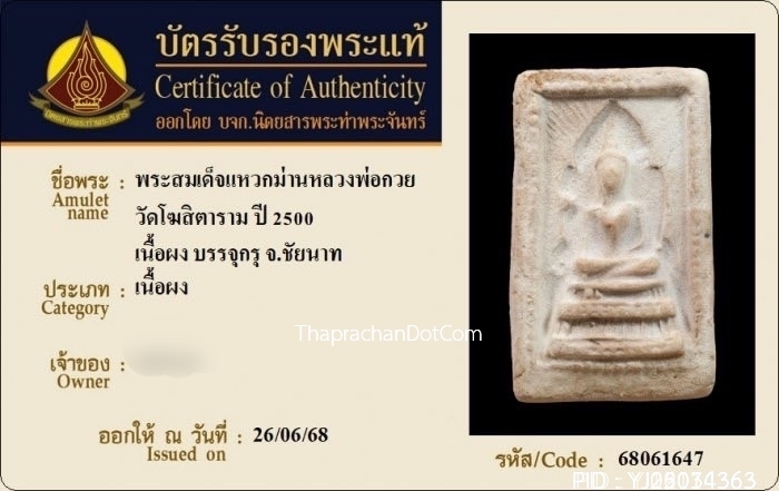 พระสมเด็จแหวกม่านหลวงพ่อกวย วัดโฆษิตาราม จ.ชัยนาท
