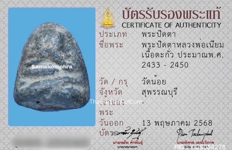 พระปิดตาหลวงพ่อเนียม วัดน้อย จ.สุพรรณบุรี