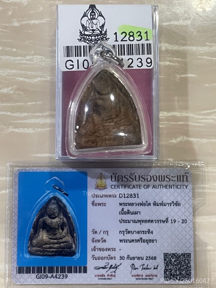 +บัตรรับรอง หลวงพ่อโต กรุบางกระทิง