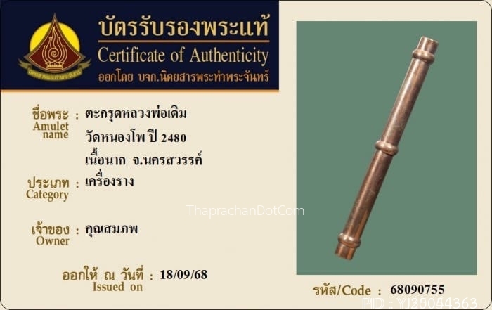 ตะกรุดหลวงพ่อพิณ วัดอุบลวรรณาราม จ.ราชบุรี ปี2500