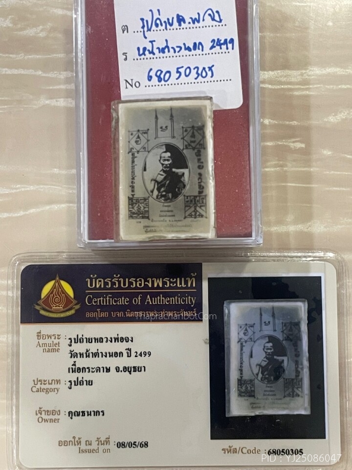+บัตรท่าพระจันทร์ รูปถ่ายเล็กหลวงพ่อจง วัดหน้าต่างนอก