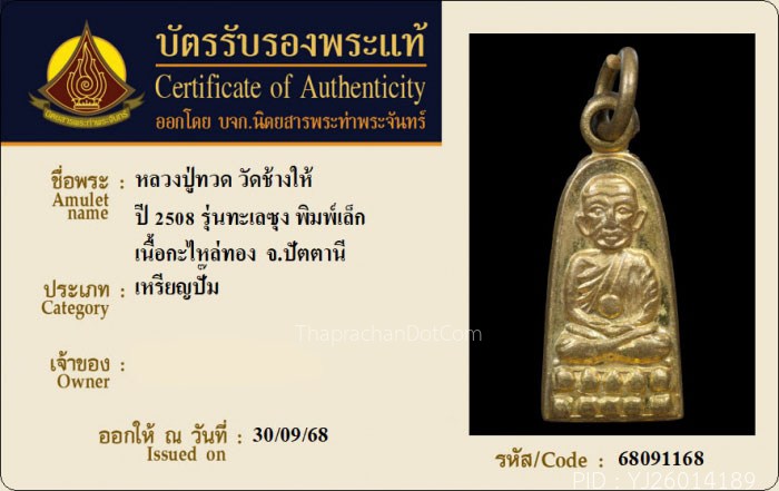 พระหลวงพ่อทอง วัดเขาตะเครา เนื้อทองคำ ปี2528 จ.เพรชบุรี