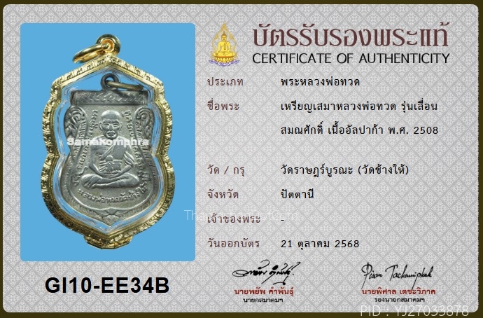 ลป.ทวด ว่าน 97 พิมพ์ใหญ่ กรรมการ พร้อมบัตรของสมาคม